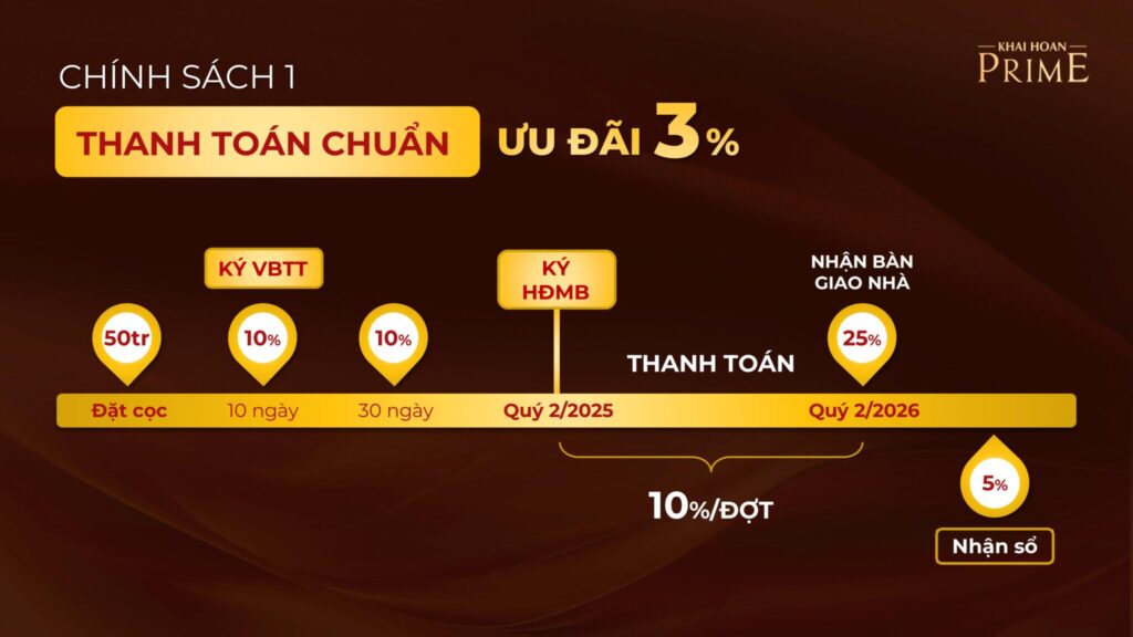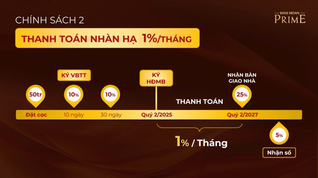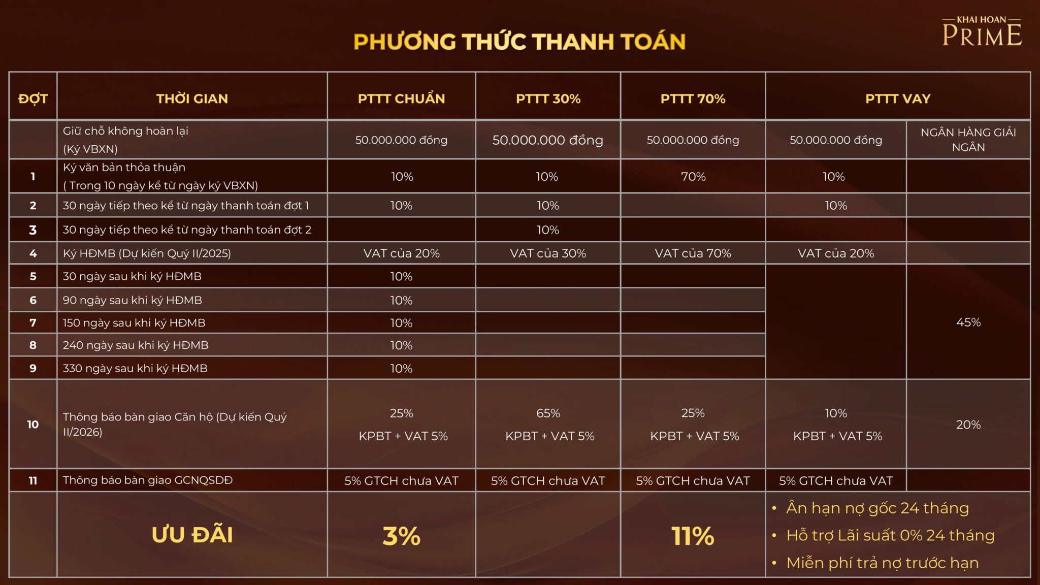 Với giai đoạn đầu tiên, Tập đoàn Khải Hoàn Land đưa ra nhiều phương thức thanh toán với nhiều ưu đãi vô cùng tốt cho dự án Khải Hoàn Prime Nhà Bè. Khách hàng có thể lựa chọn 1 trong 4 phương thức sau: